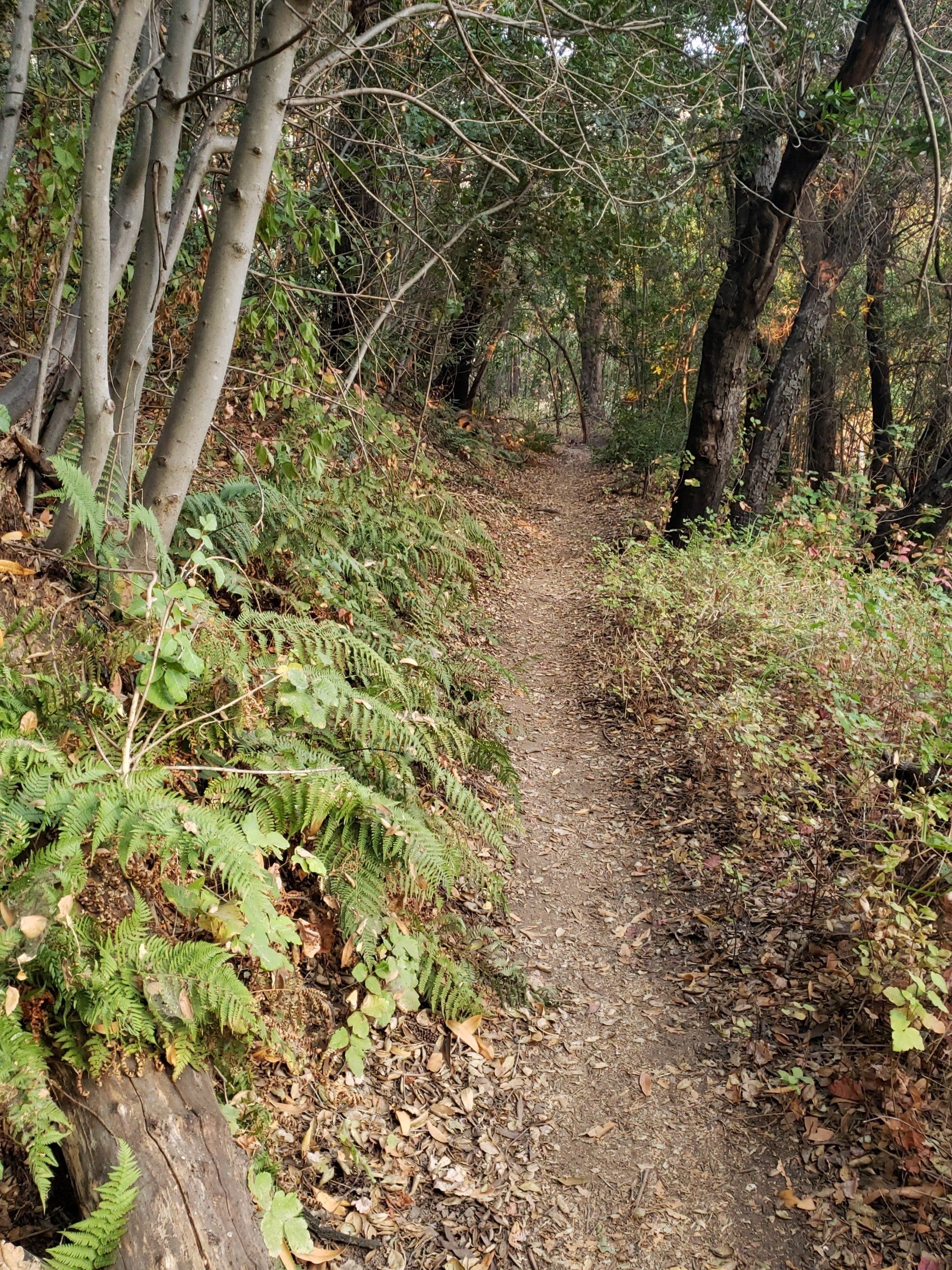 Highlights: Morning sunrise looking back at Topanga State Park. Covered with beautiful trees, ferns moss for almost entire length of trail. Hondo (deep) Canyon. Relatively easy climb with switchbacks winding thru forest.