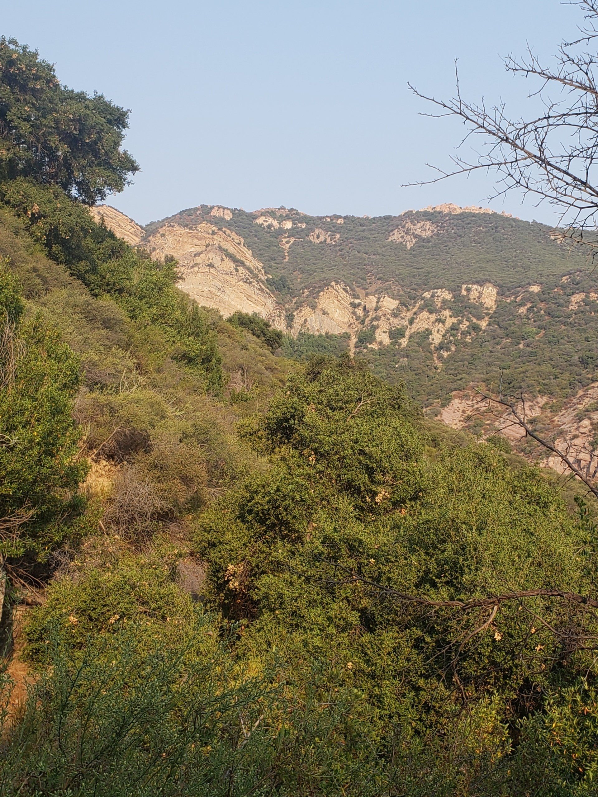 Highlights: Three Oak Woodlands regenerating leaves from the Woosley fire started November 8, 2018. Zuma Creek with water. The only place I could have used my water filter if I needed to refill in late Summer. Views down Lower Zuma Canyon. First day with a cool late morning breeze.
