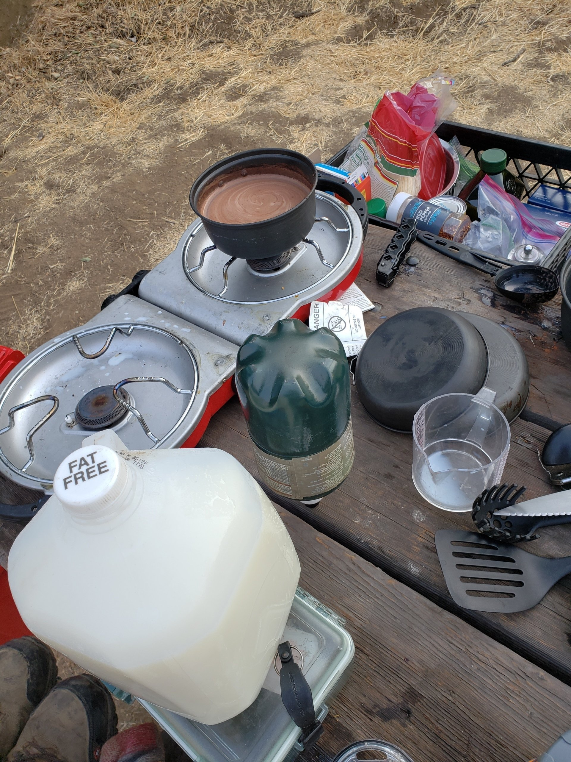 Started Trek at 8:20am. Yerba Buena Crossing to Mishe Mokwa Trailhead. Forgot to bring my hiking boots and had to go back to basecamp. Decided to have breakfast. Luckily the weather was getting cooler.